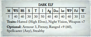 Boarding a Black Ark is not easy, despite how it appeared in the 2006 MMO Warhammer: Age of Reckoning. These ships don’t just pull up to the beach, requiring players foolish enough to attempt to board one to do so from sea or air. Fear not, for Cubicle 7 has already thought ahead to how ridiculous and crazy our parties can be, including four quick examples of how to get (or find) oneself aboard. Having found their way aboard the Ark, your players are likely to find themselves in a bit of trouble as non-Druchii wandering the streets. Aiding GMs is a detailed and impressive random encounter table that can be utilized. Broken down by the location that your players find themselves in, such as a militarized area or one frequented by Druchii of status, the random encounter table is almost four tables in one and details the potential for interactions with Druchii that range from NPCs being indifferent to downright dangerous when the murderous response is rolled.