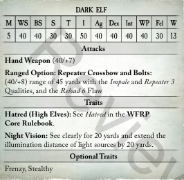 While some may not appreciate the change, I love that these new stat blocks are more akin to what Cubicle 7 did with the antagonists for Warhammer: The Old World Roleplaying Game. Having what each feat/trait does on the NPC stat is much easier than the inevitable search for a trait that you just can’t remember during the game.